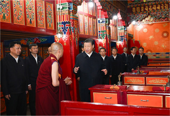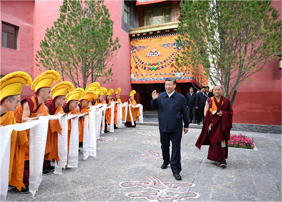 6月18日至19日,中共中央总书记、国家主席、中央军委主席习近平在青海考察。这是18日下午,习近平在位于西宁市城中区的宏觉寺考察。 新华社记者 翟健岚 摄