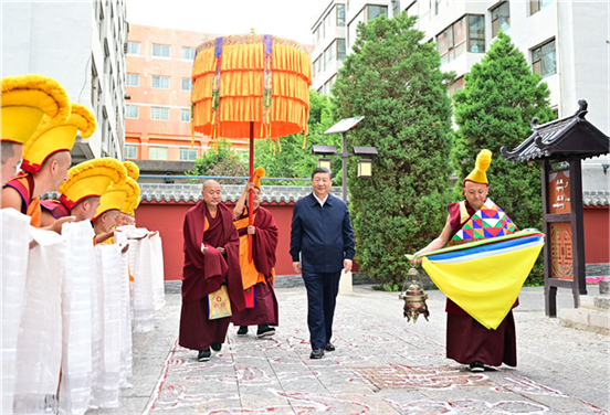 6月18日至19日,中共中央总书记、国家主席、中央军委主席习近平在青海考察。这是18日下午,习近平在位于西宁市城中区的宏觉寺考察。 新华社记者 谢环驰 摄