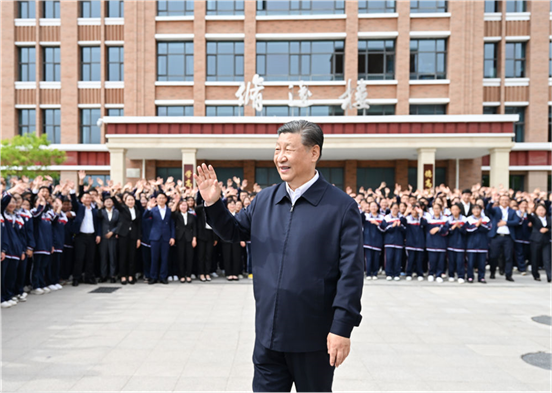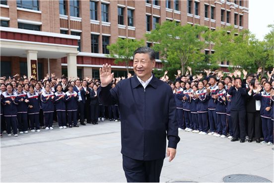 6月18日至19日,中共中央总书记、国家主席、中央军委主席习近平在青海考察。这是18日下午,习近平在果洛西宁民族中学考察时,向师生们挥手致意。 新华社记者 鞠鹏 摄