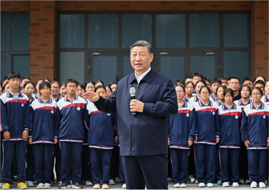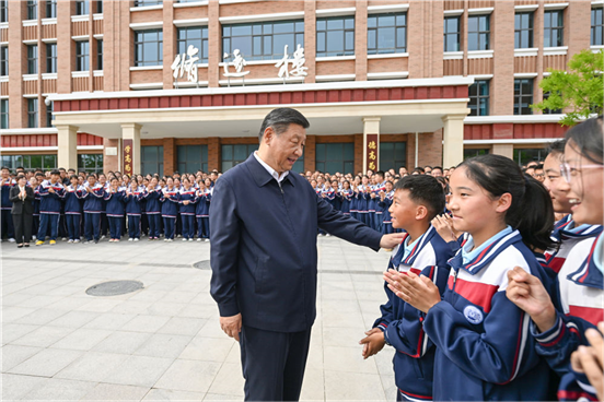 教学楼前广场上,师生们纷纷围拢过来,高声向总书记问好。习近平亲切地对大家说,我到西宁第一站就来看望老师和同学们。上海援建的这所中学,培养来自果洛牧区的各民族孩子,成效明显,意义深远。希望孩子们倍加珍惜这里的良好条件,心怀感恩、好好学习,德智体美劳全面发展,立志成为中国特色社会主义事业的接班人和建设者,努力为自己赢得人生出彩的机会。他祝孩子们学有所成、健康成长。