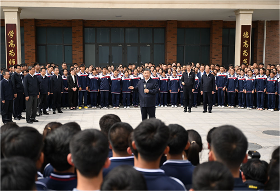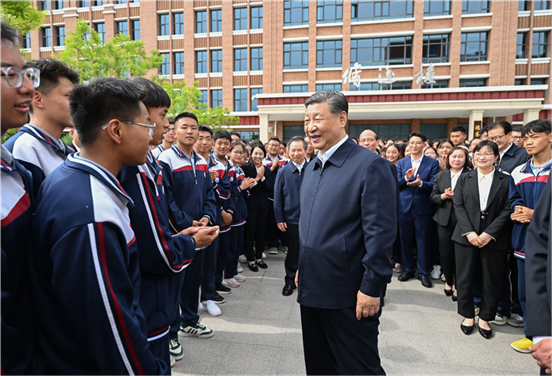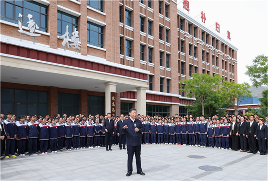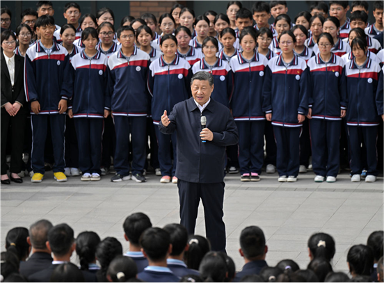 6月18日至19日,中共中央总书记、国家主席、中央军委主席习近平在青海考察。这是18日下午,习近平在果洛西宁民族中学考察时,同师生们亲切交流。 新华社记者 鞠鹏 摄