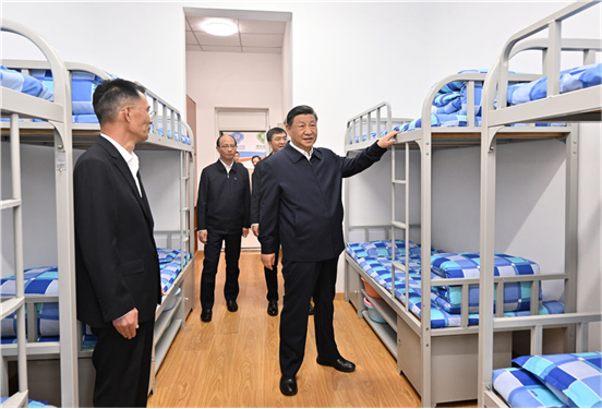 6月18日至19日,中共中央总书记、国家主席、中央军委主席习近平在青海考察。这是18日下午,习近平在果洛西宁民族中学宿舍楼察看学生住宿条件。 新华社记者 岳月伟 摄