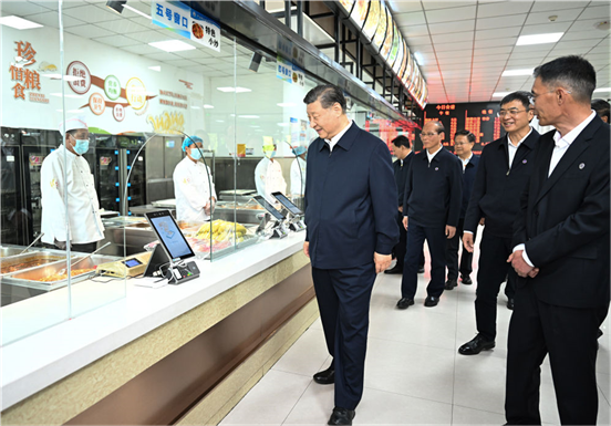 6月18日至19日,中共中央总书记、国家主席、中央军委主席习近平在青海考察。这是18日下午,习近平在果洛西宁民族中学食堂察看学生就餐条件。 新华社记者 谢环驰 摄