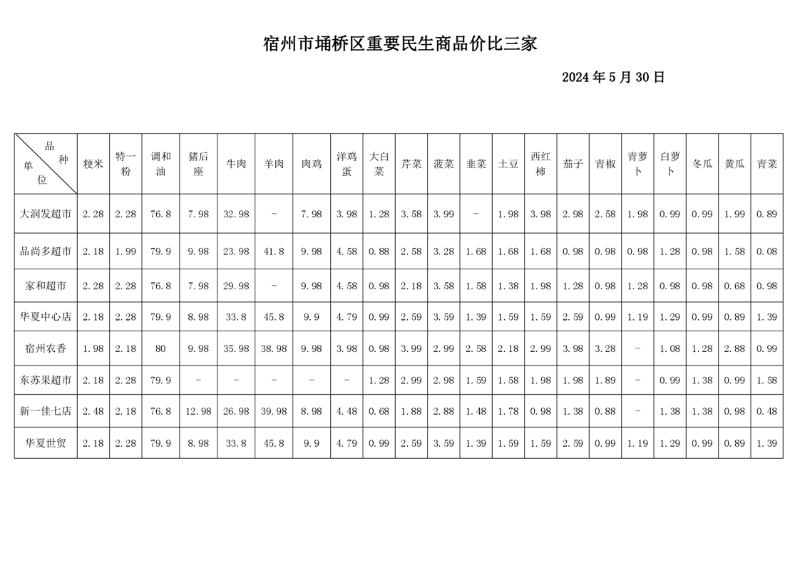 宿州市埇桥区重要民生商品价比三家5.30