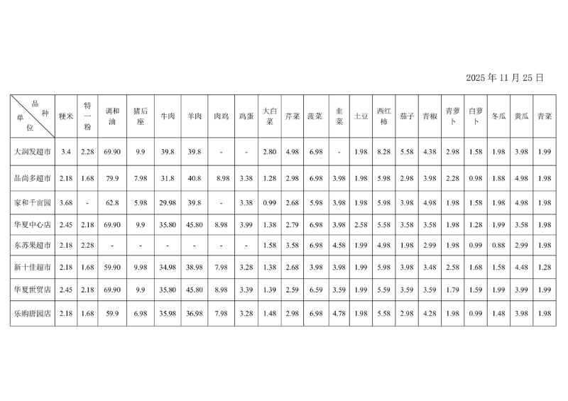 宿州市埇桥区重要民生商品价比三家11.25