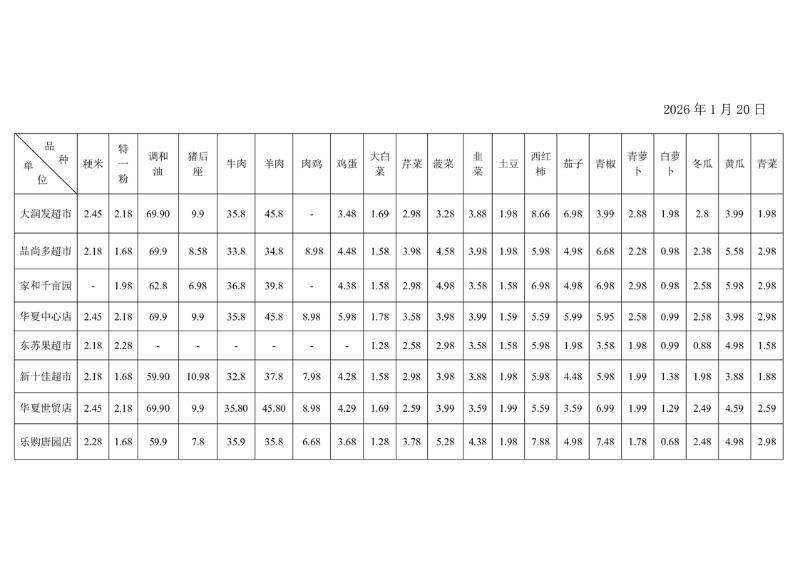 宿州市埇桥区重要民生商品价比三家1.20