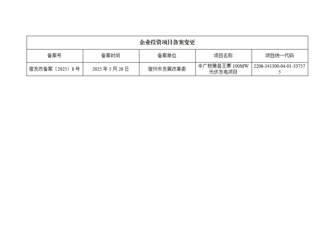中广核萧县王寨100MW光伏发电项目备案变更公示