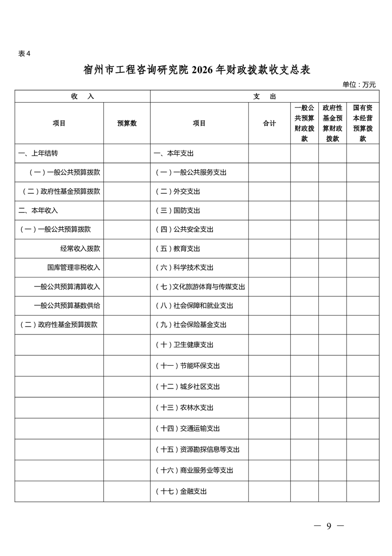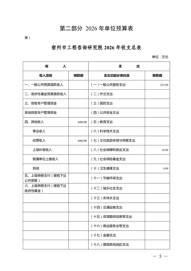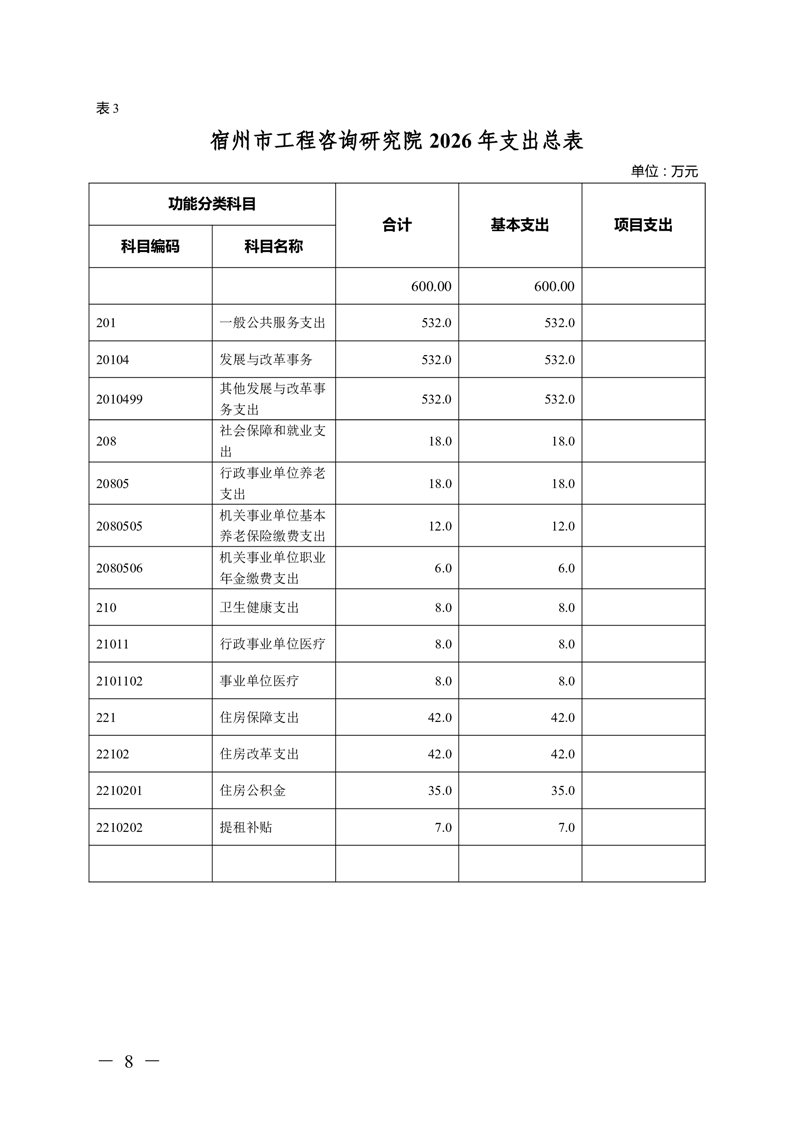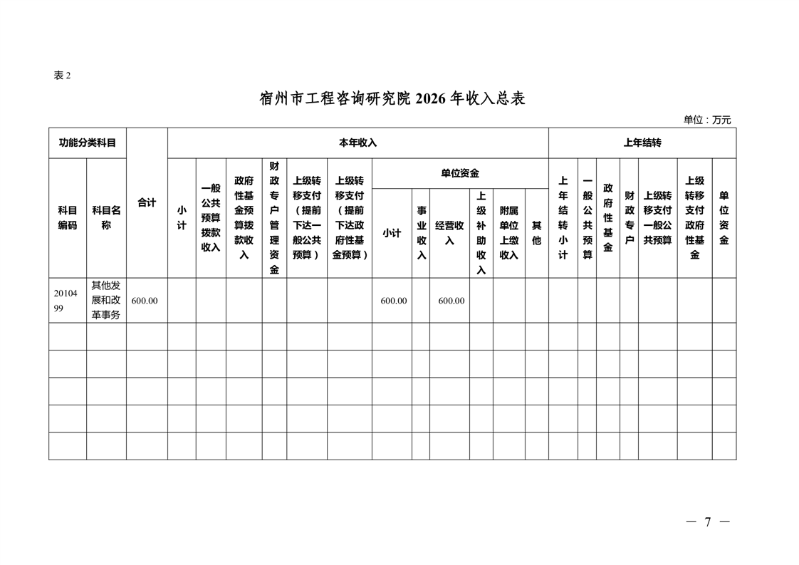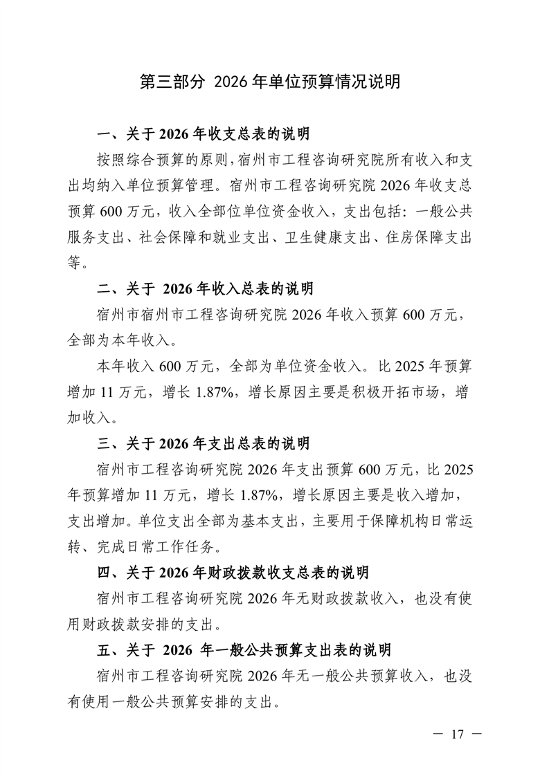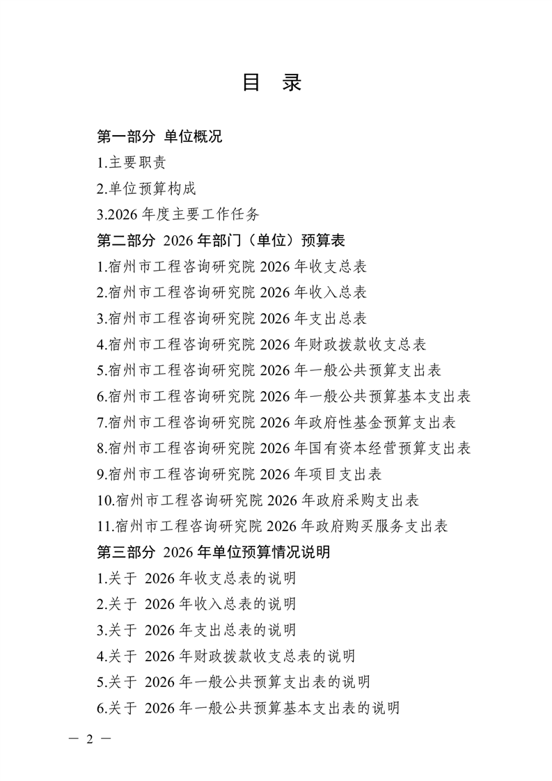 宿州市工程咨询研究院2026年预算 |