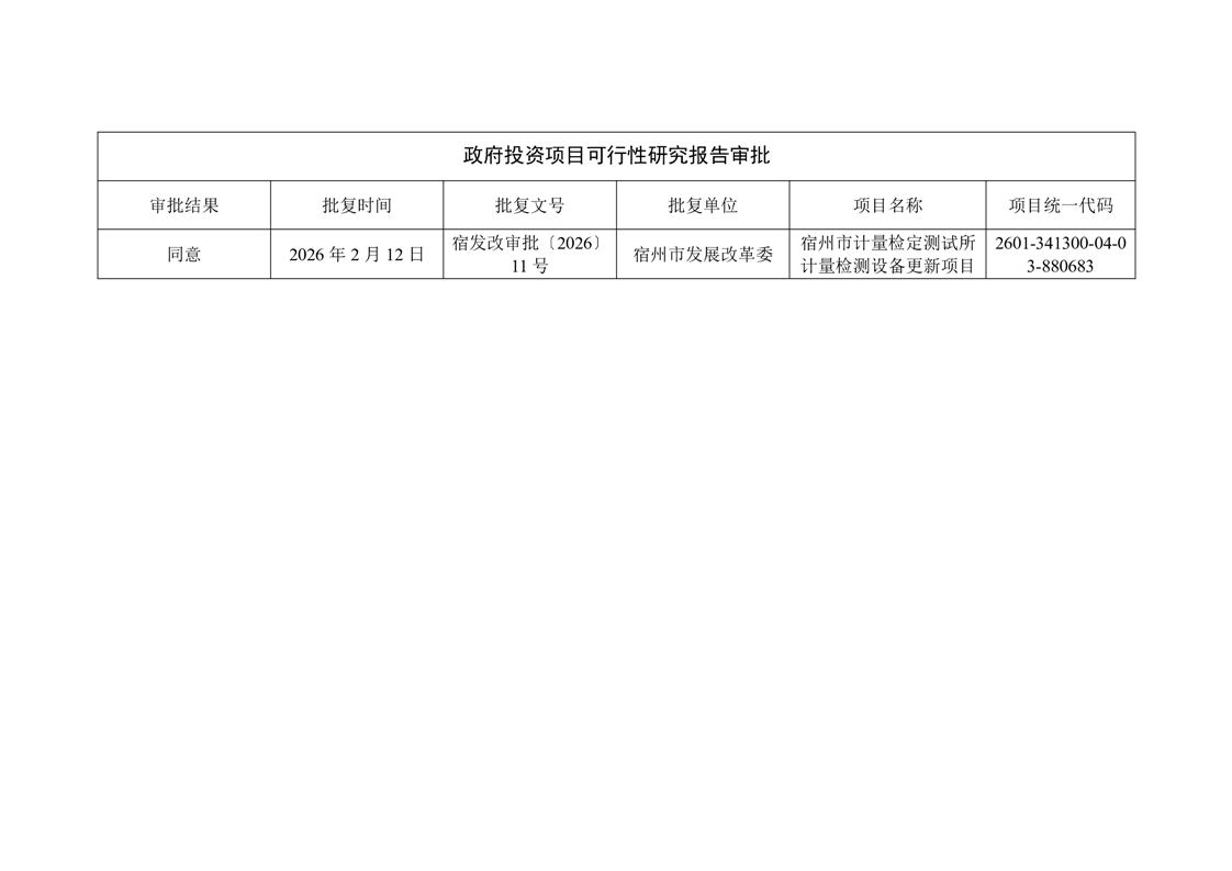 宿州市计量检定测试所计量检测设备更新项目可行性研究报告审批公开 |